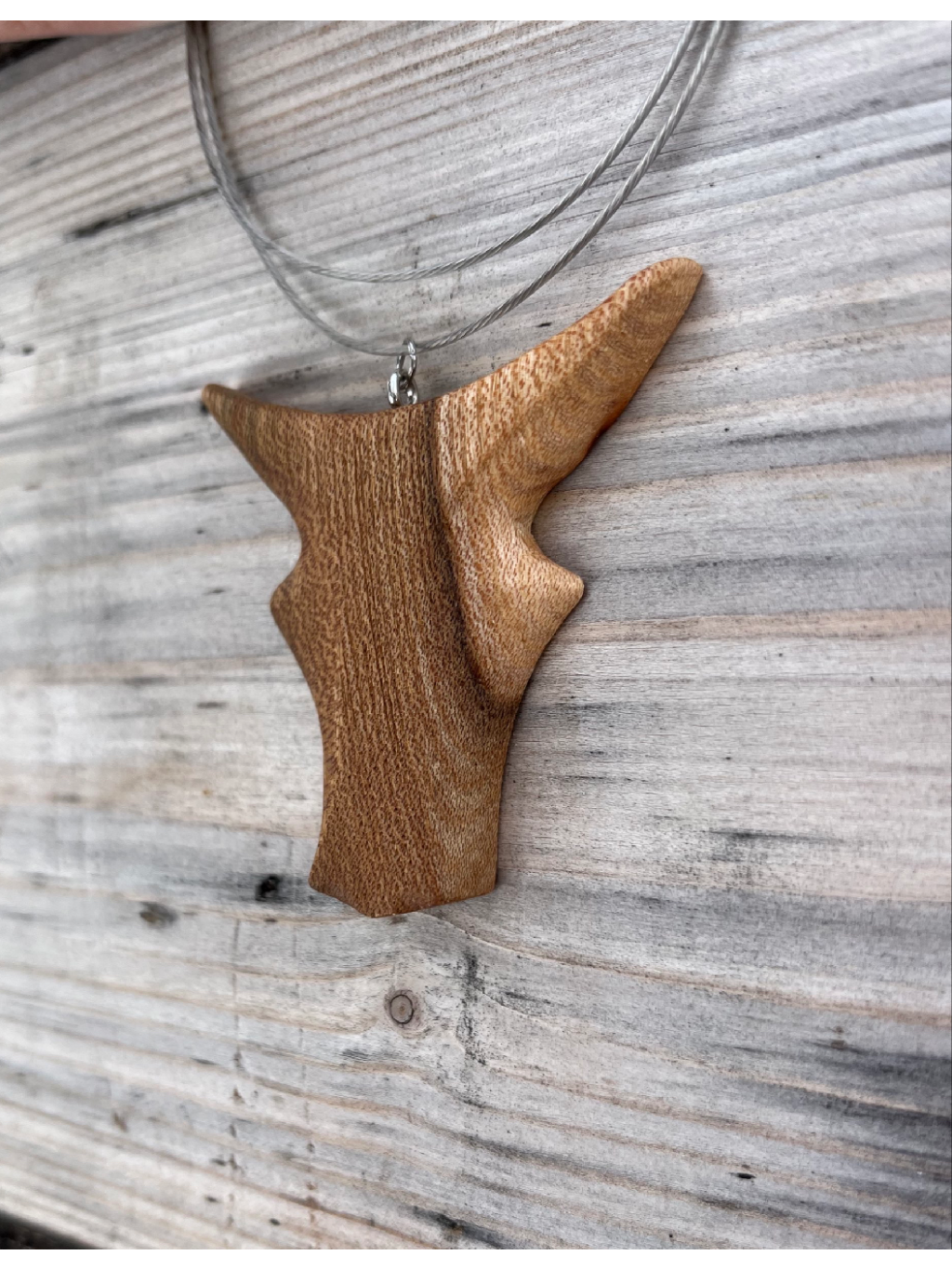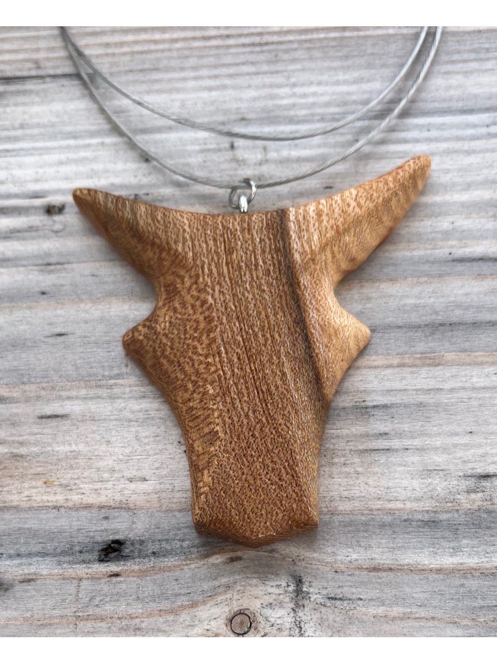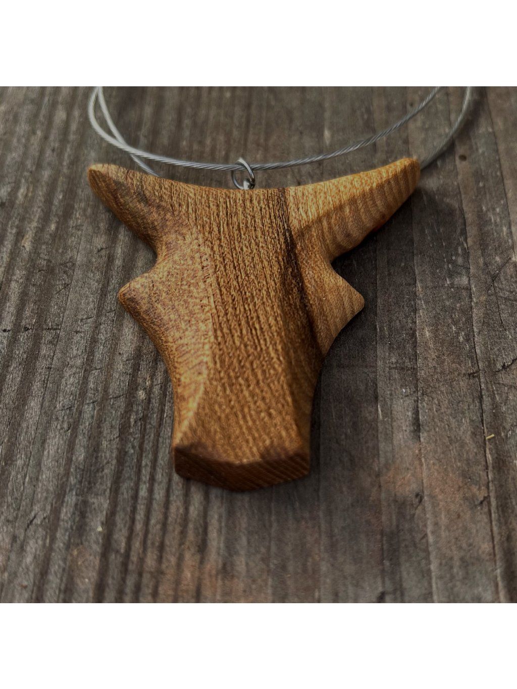 - Tento dřevěný přívěšek je vyroben z jilmového dřeva, které je známé svou pevností a krásnou kresbou.